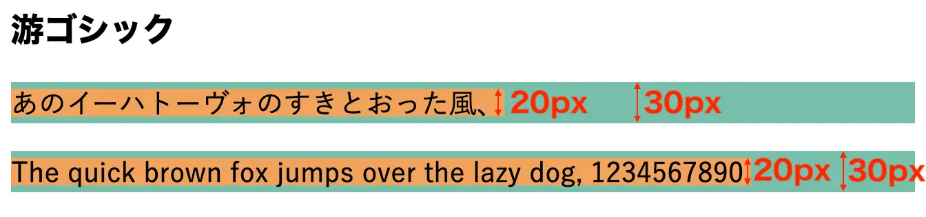 font-sizeだけの指定では、font-familyによって1行の高さが変わることもあるfont-sizeとline-heightを指定していれば、font-familyやブラウザによる1行の高さの差異は少ない