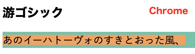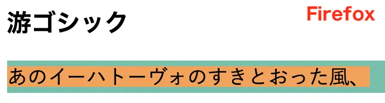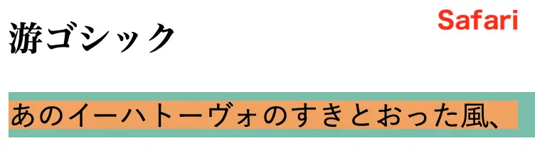 さらに興味深いのは、Timesの日本語部分です。Timesは日本語文字を持たないフォントファミリーのため、日本語部分にはブラウザのデフォルト、この例ではヒラギノ角ゴシックが適用された状態になっています。