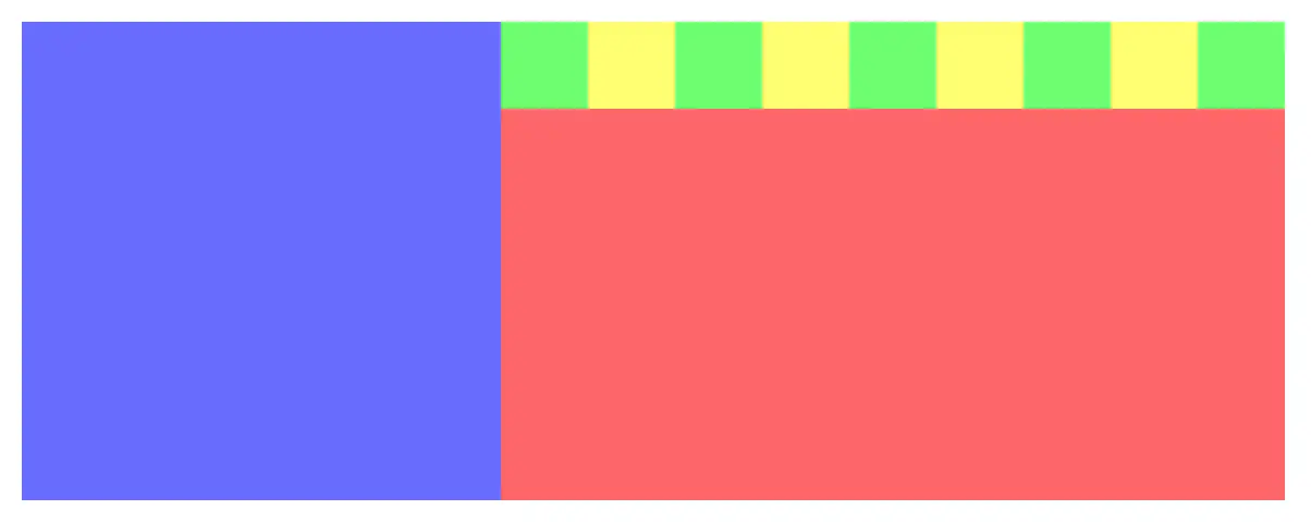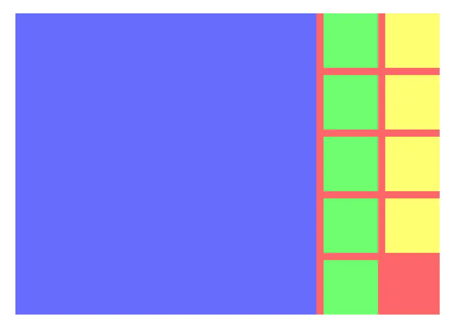 この結果、全体の横幅の値を変えると、大きな画像が入る領域(青い部分)の横幅は変わらず、サムネイルの領域(赤い部分)の横幅だけが伸び縮みするようになります。