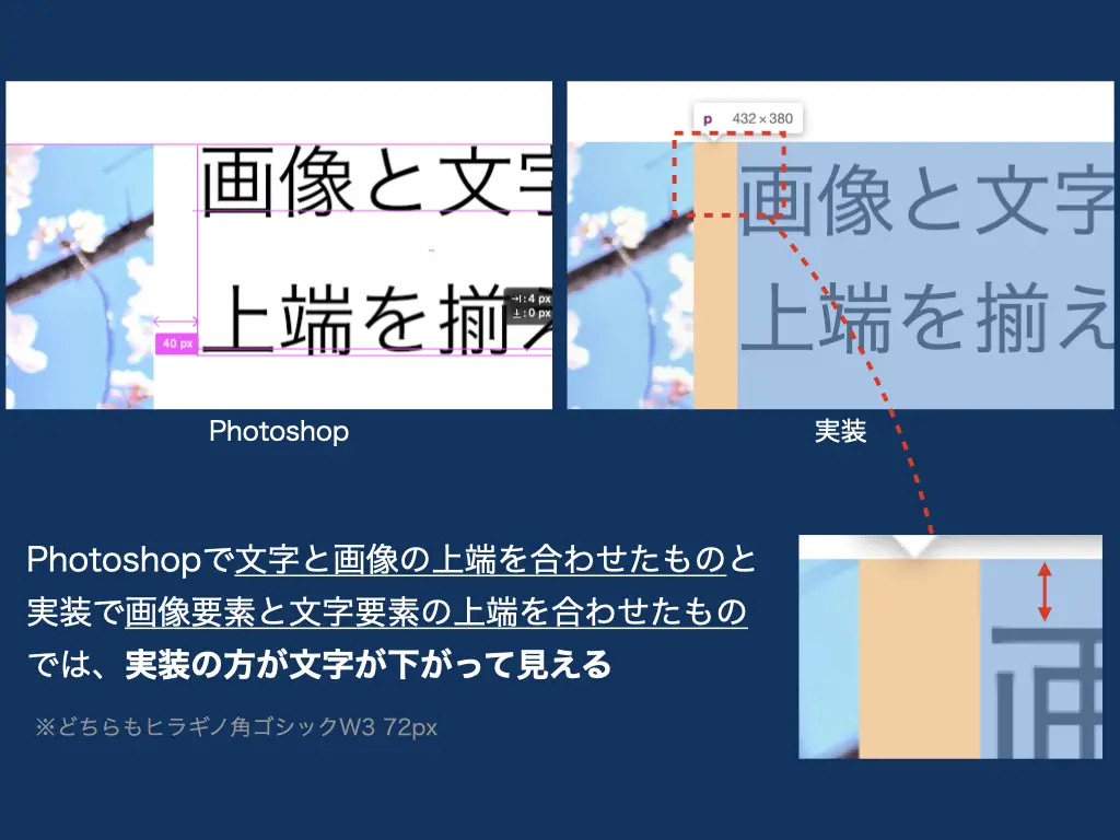 以上、画像と文字を横並びにしたときPhotoshopと実装で見た目が同じにならないケースのご紹介でした。