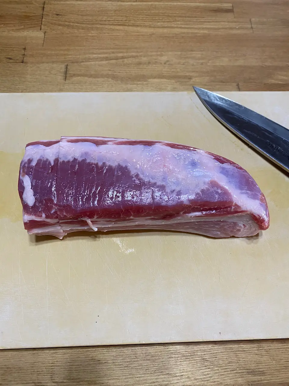 豚バラブロックを切る