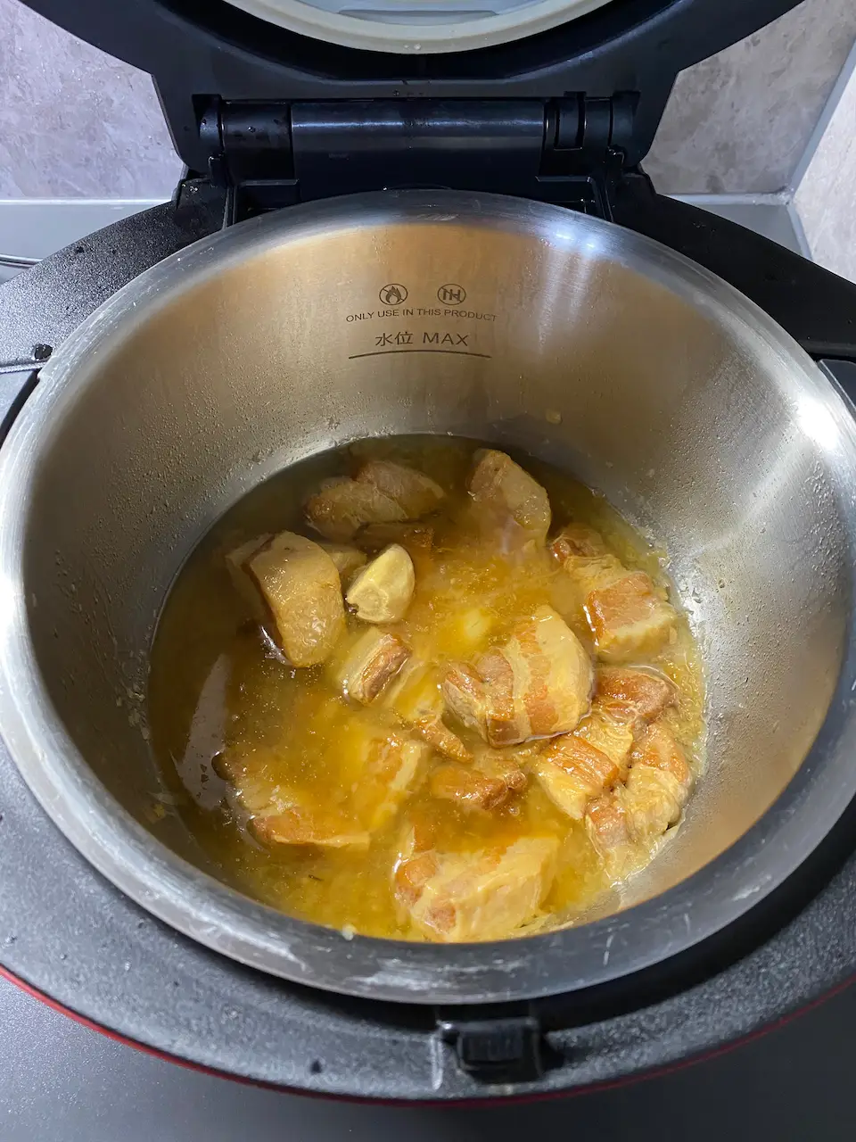 このまま、かき混ぜないよう弱火で2時間煮込みます。